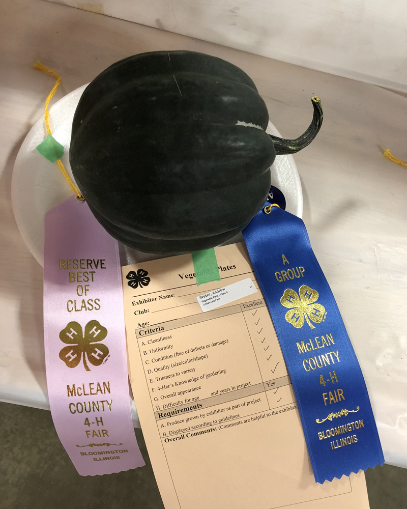 Michal earned Best of Show for both of her sewing projects (which qualifies her to go to the IL State Fair). She also earned Best of Class for the beets she brought. Andrew earned Reserve Best of Class for his acorn squash. He was a little disappointed because he had received Best of Class for his acorn squash for the past 2 years, but reserve isn’t anything to scoff at. I’m sure he’ll try to reclaim his title again next year. Both kids did a great job and we’re so proud of the time and energy they put in to all their projects. It’s an accomplishment they will be able to look back on and be proud of!
